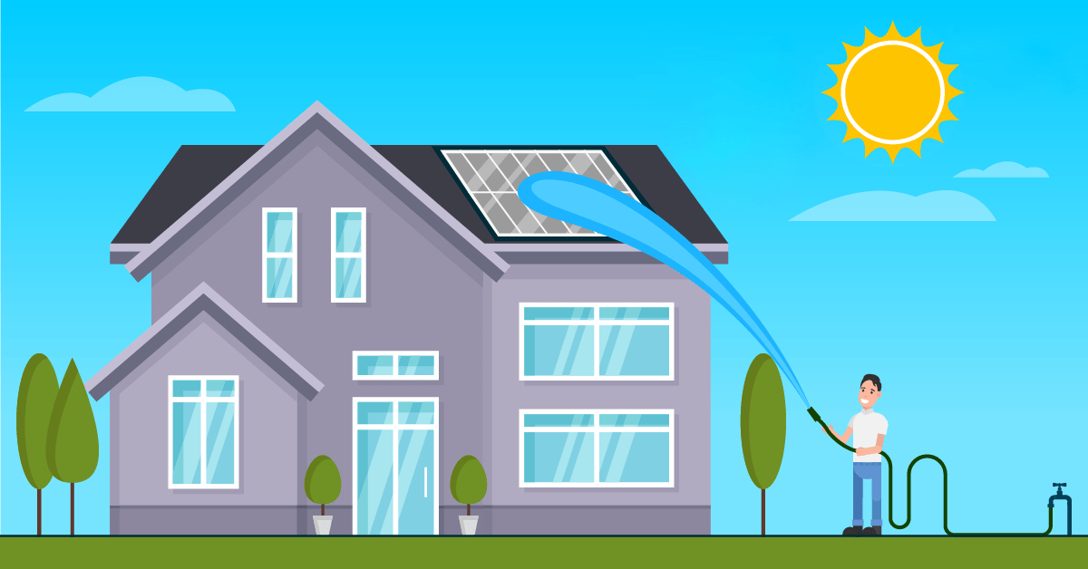 Hemos recopilado algunas recomendaciones para que limpies tus paneles con la vieja agua corriente. Puedes hacerlo se manera segura desde el suelo sin tener que subir al techo.1